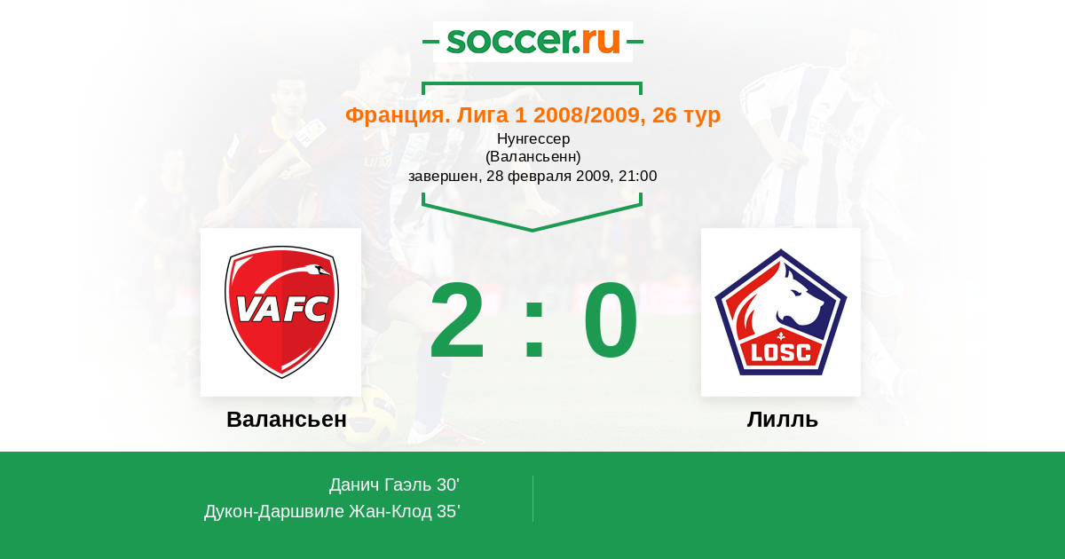 Протокол матча Валансьен против Лилль