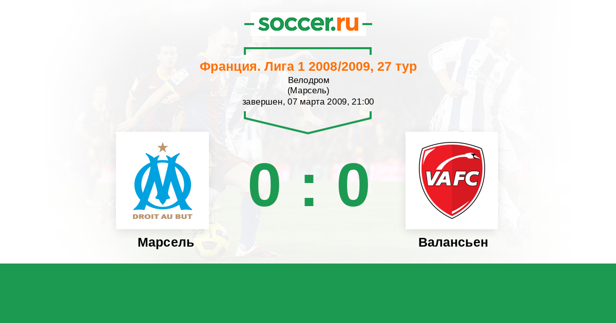 Протокол матча Марсель против Валансьен