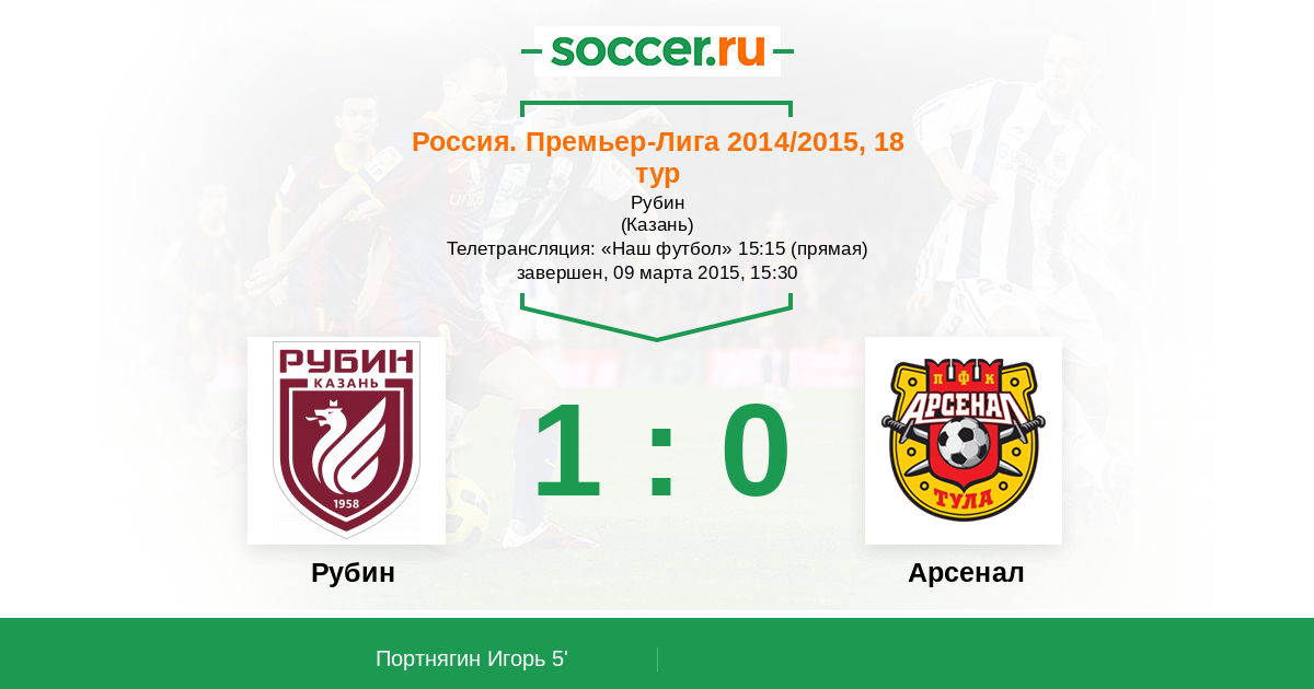 Протокол матча Рубин против Арсенал