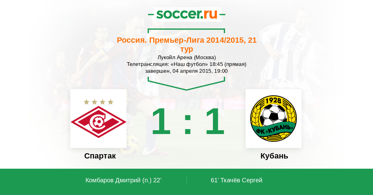 Протокол матча Спартак против Кубань