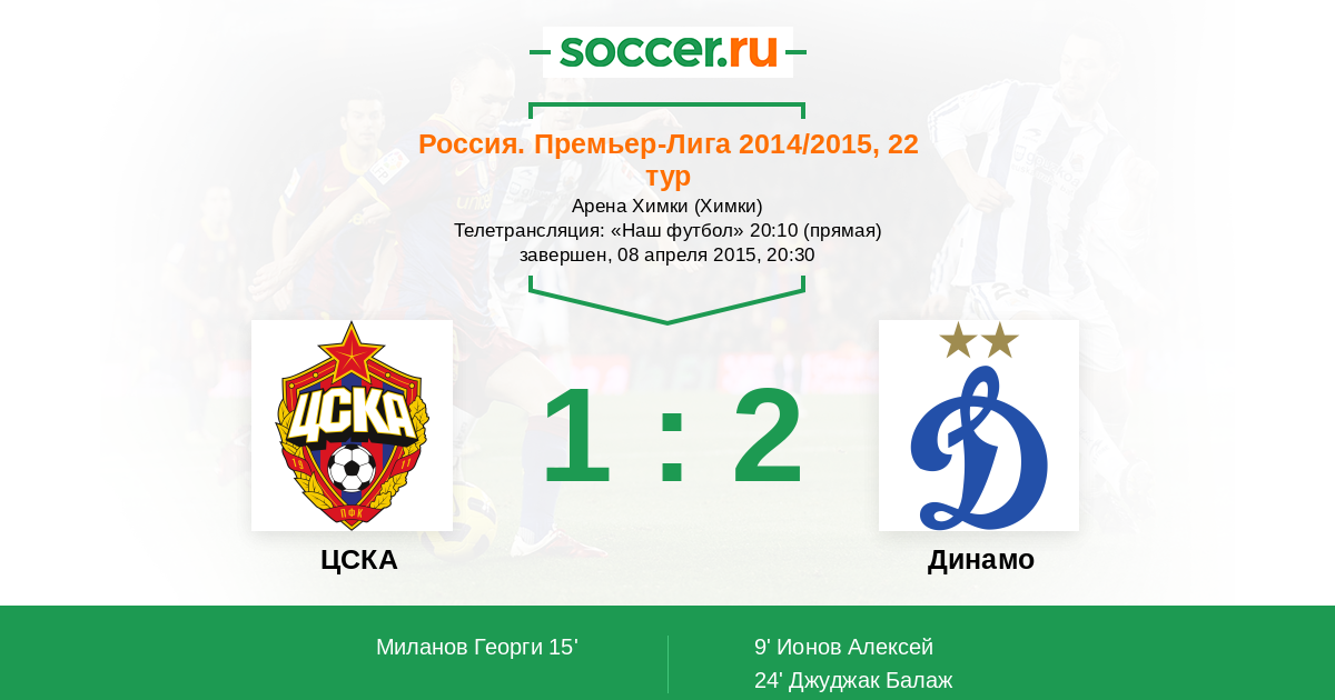 Протокол матча ЦСКА против Динамо