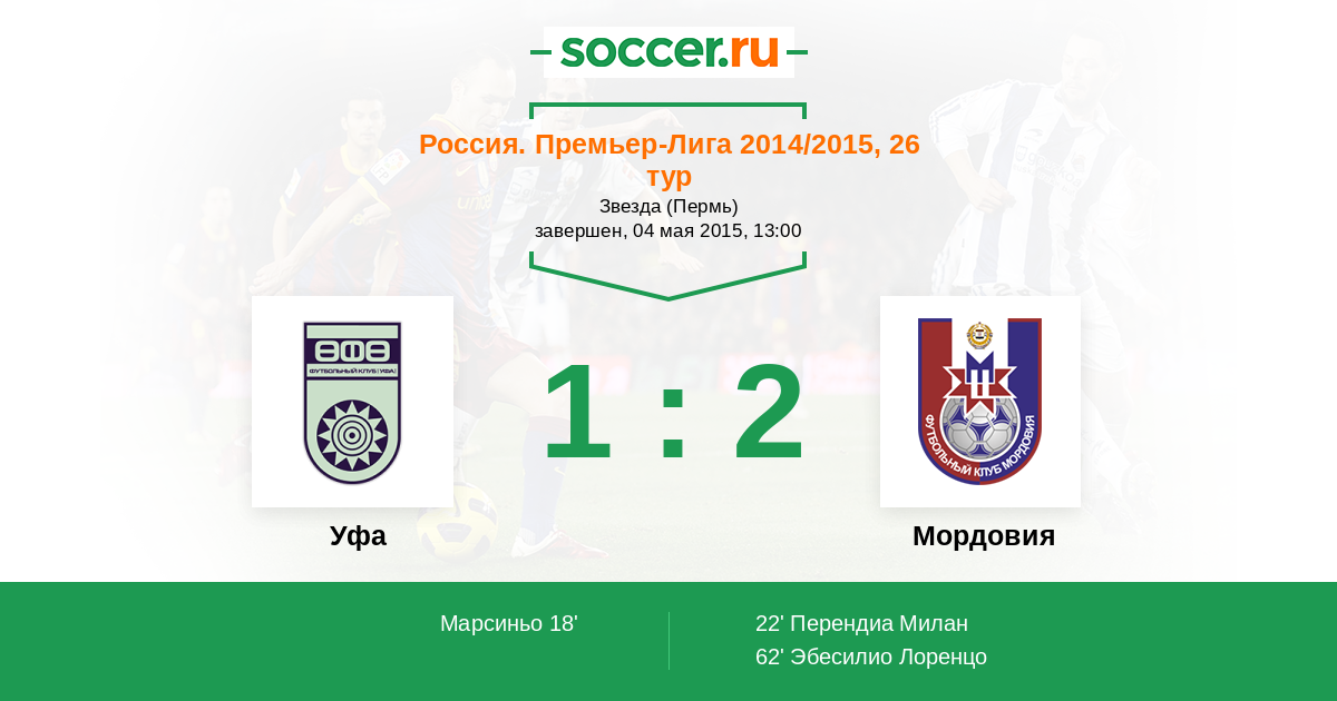 Протокол матча Уфа против Мордовия