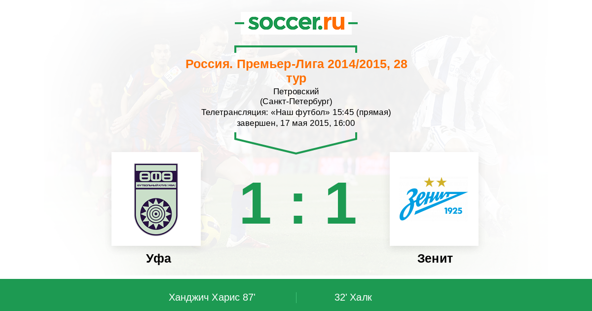 Протокол матча Уфа против Зенит