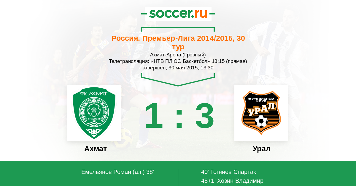 Протокол матча Терек против Урал