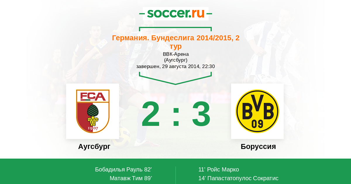 14' (0:2) Папастатопулос Сократис (25) (Ройс Марко (11))