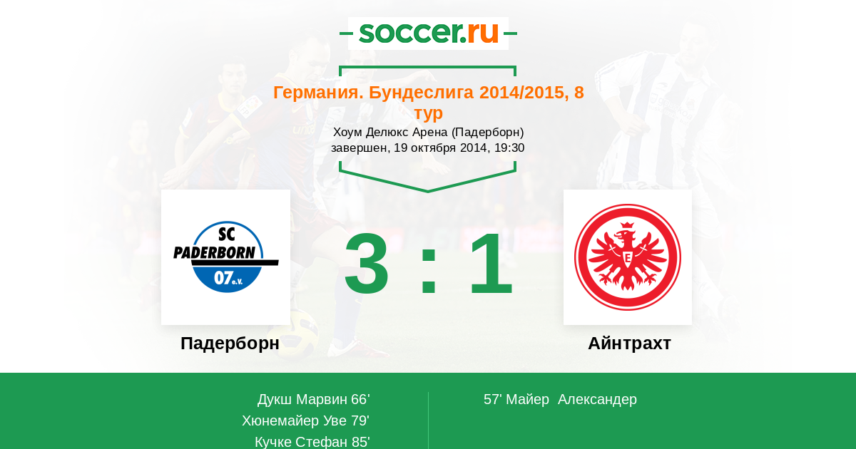 Протокол матча Падерборн против Айнтрахт