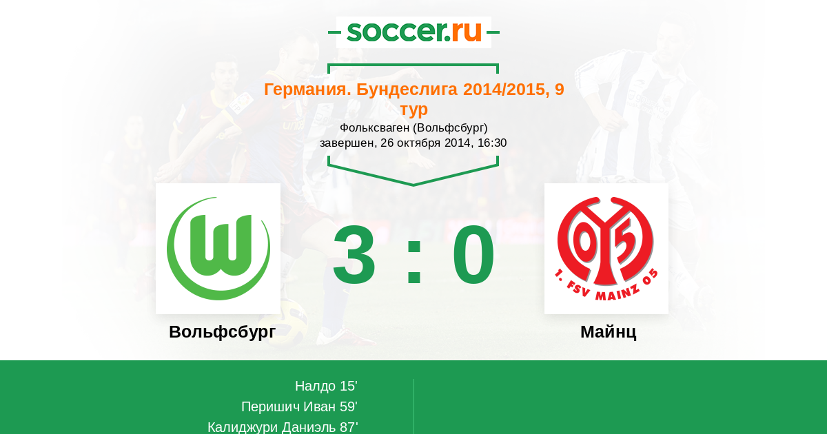 Протокол матча Вольфсбург против Майнц