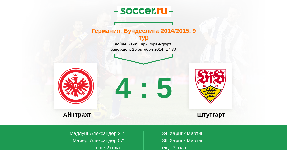 Протокол матча Айнтрахт против Штутгарт