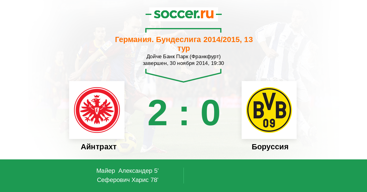 Протокол матча Айнтрахт против Боруссия