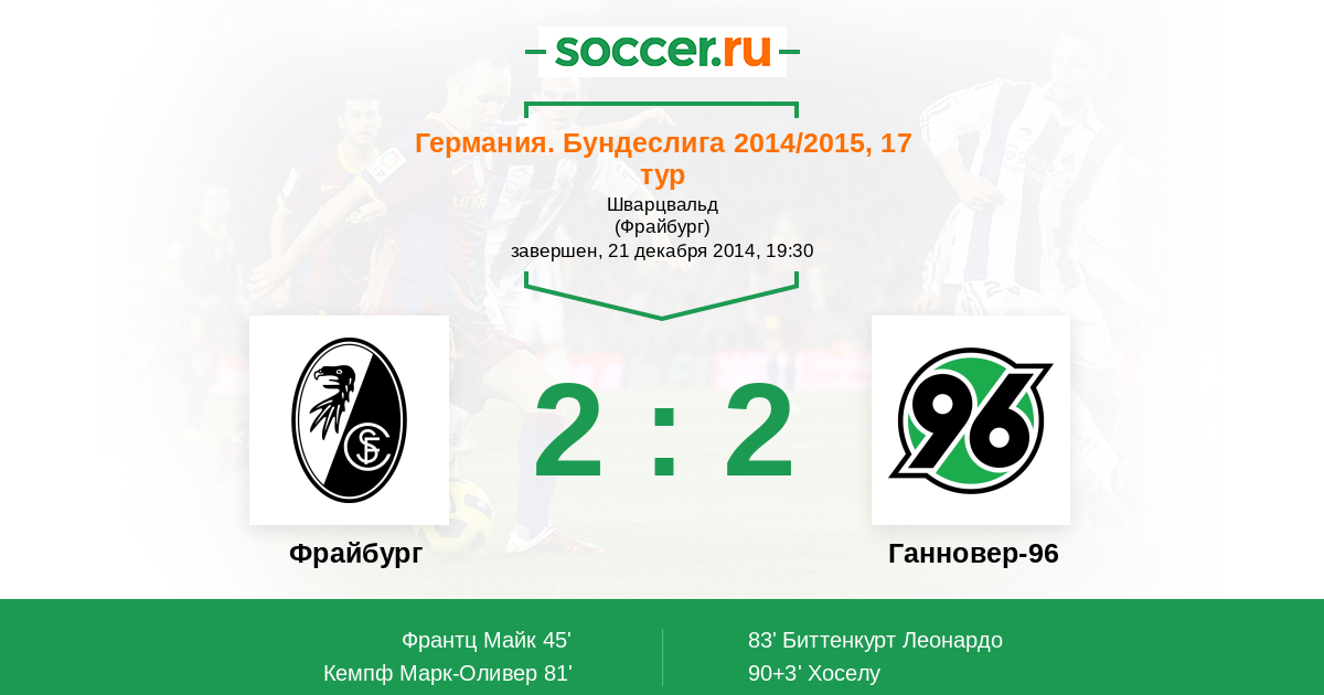 45' (1:0) Франтц Майк (8) (Гюнтер Кристиан (30))