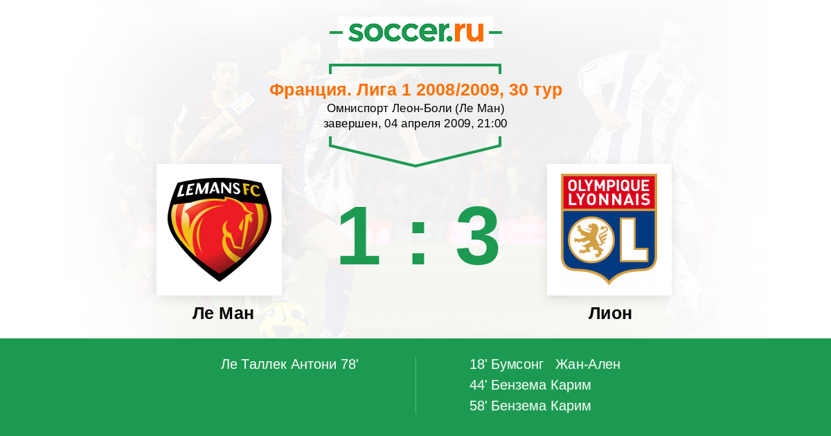 Протокол матча Ле Ман против Лион