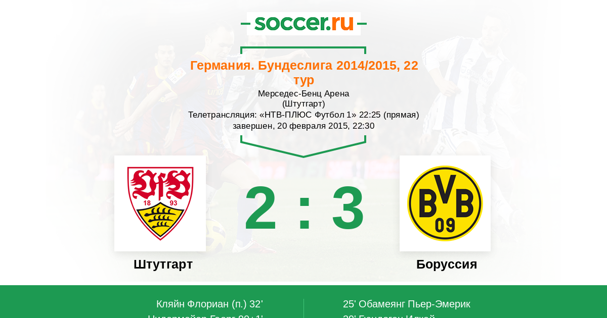 Протокол матча Штутгарт против Боруссия