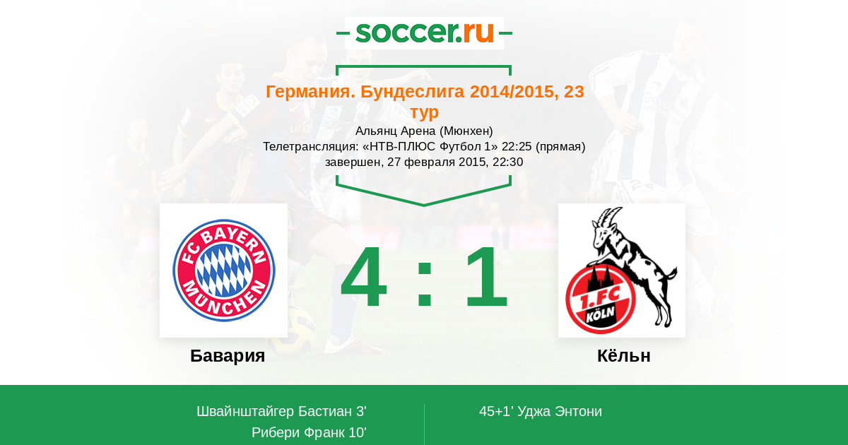 Протокол матча Бавария против Кёльн