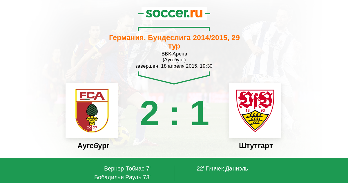 Протокол матча Аугсбург против Штутгарт