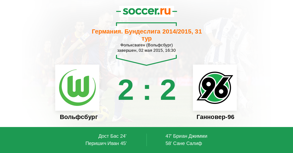 Протокол матча Вольфсбург против Ганновер-96