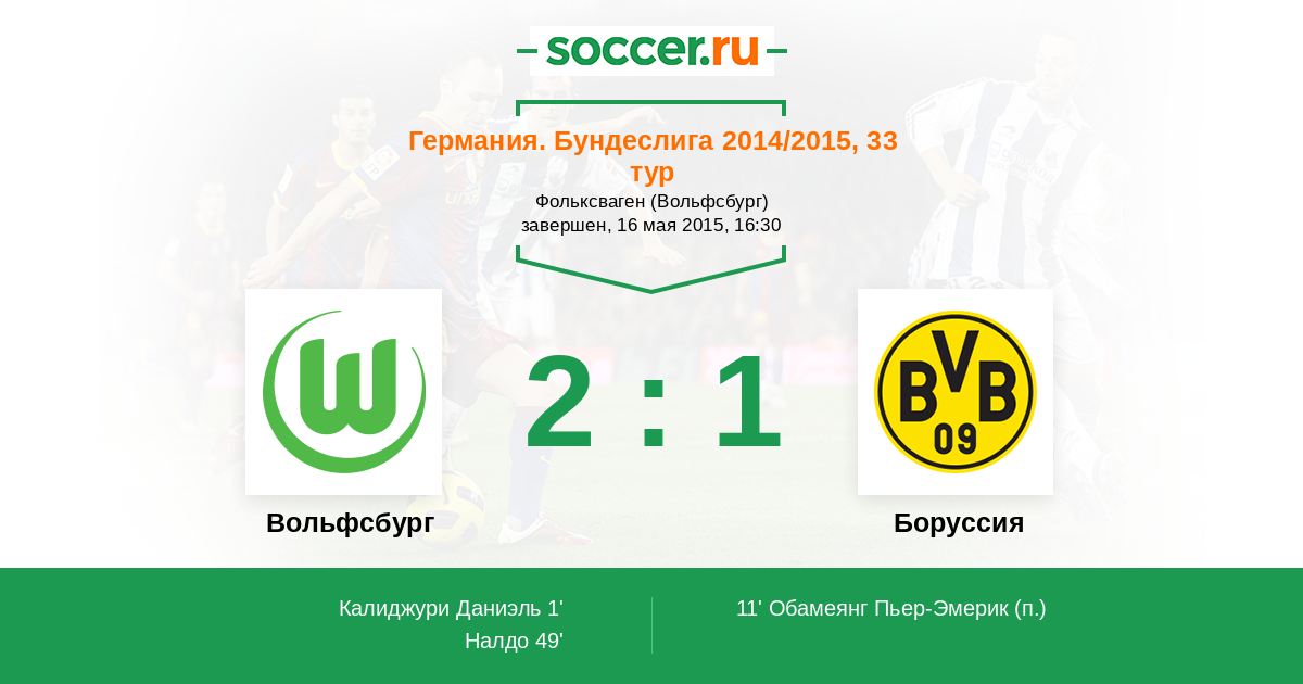 Протокол матча Вольфсбург против Боруссия