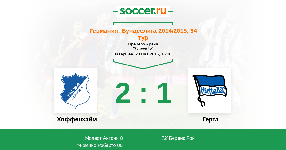 8' (1:0) Модест Антони (27) (Фирмино Роберто (10))