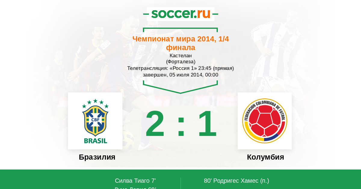 7' (1:0) Силва Тиаго (3) (Неймар (10))