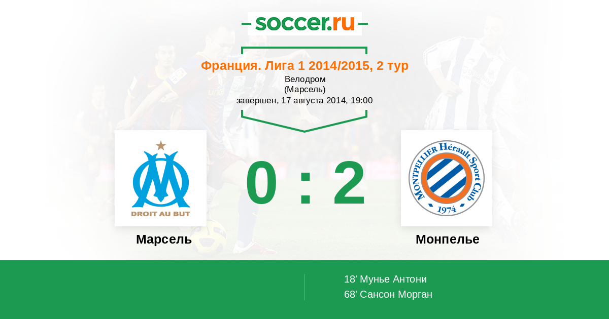 Протокол матча Марсель против Монпелье