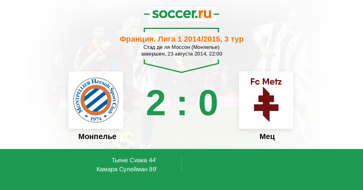 Протокол матча Монпелье против Мец