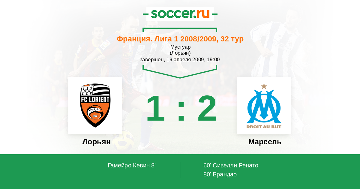 Протокол матча Лорьян против Марсель