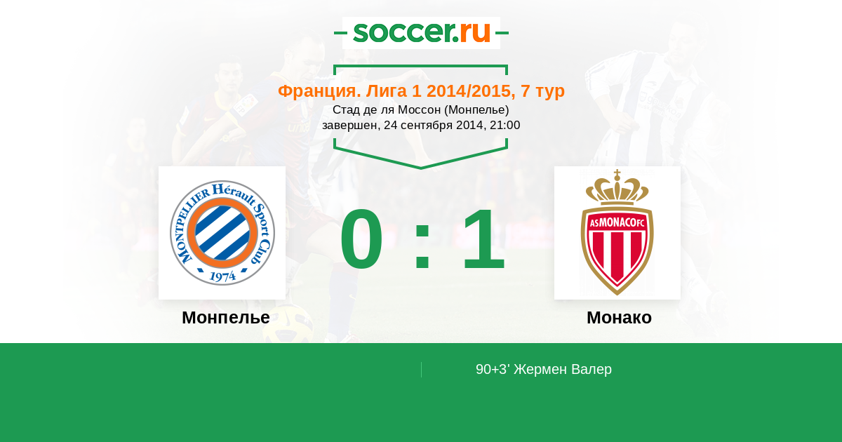 Протокол матча Монпелье против Монако
