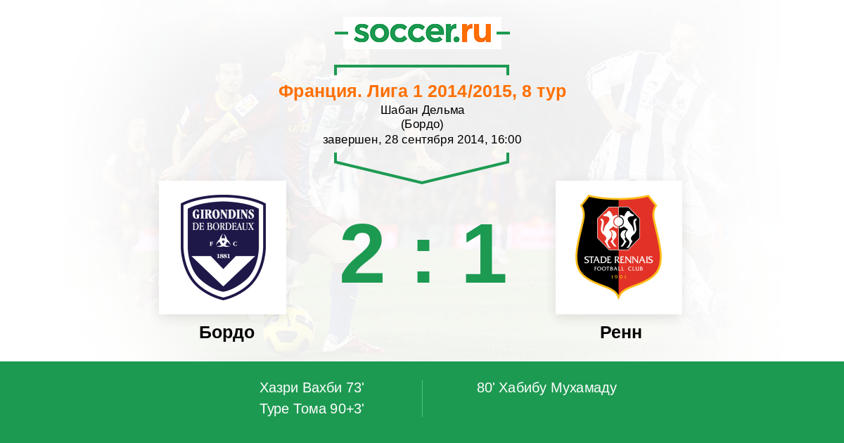 Протокол матча Бордо против Ренн