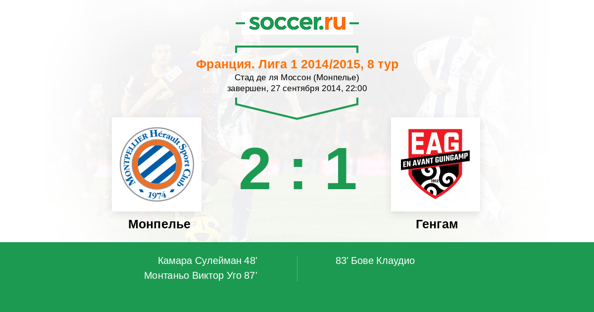 Протокол матча Монпелье против Генгам