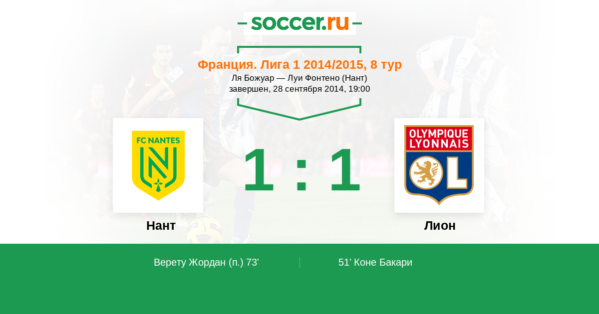 Протокол матча Нант против Лион