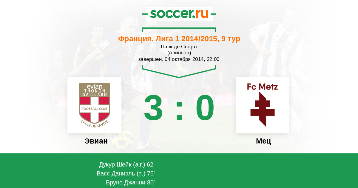 Протокол матча Эвиан против Мец