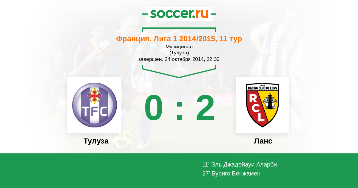 11' (0:1) Эль Джадейауи Аларби (21) (Н'Диайе Деме (14))
