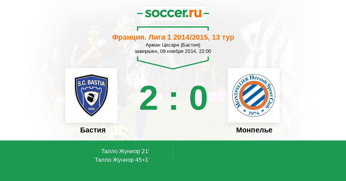 Протокол матча Бастия против Монпелье