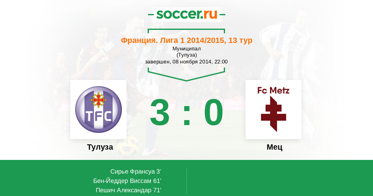 Протокол матча Тулуза против Мец