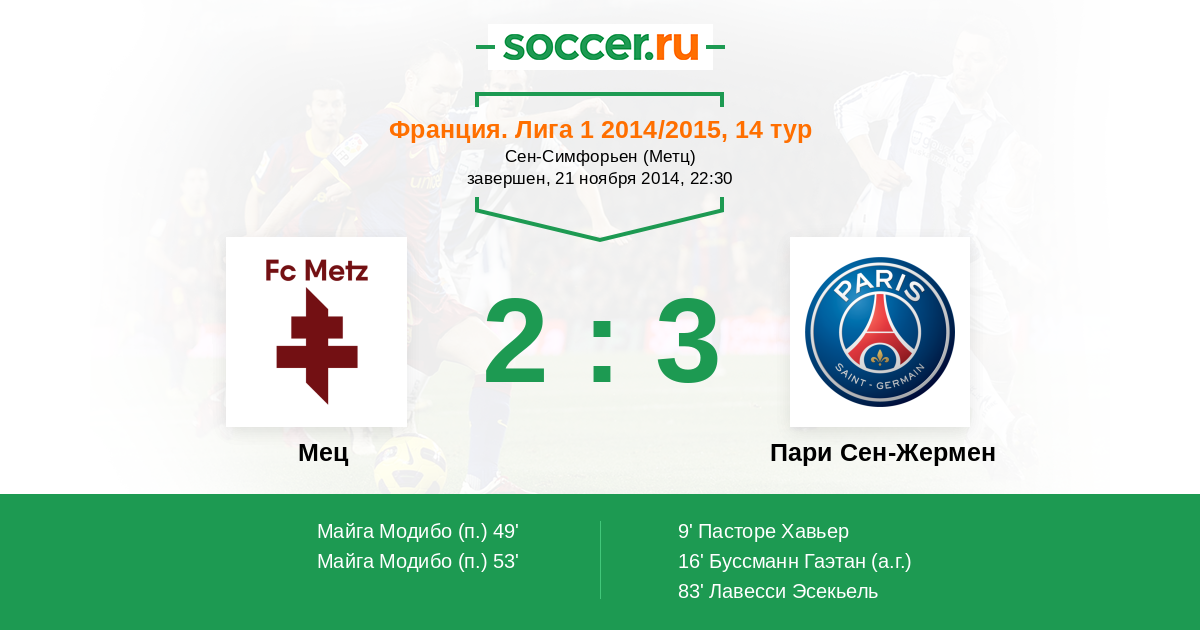 Протокол матча Мец против Пари Сен-Жермен