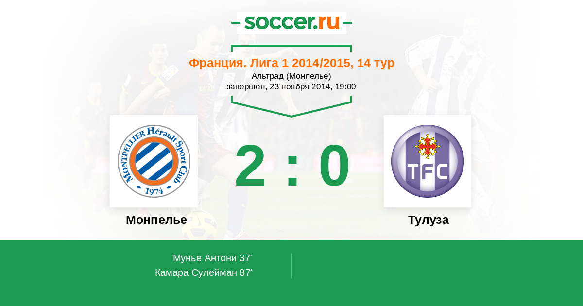 Протокол матча Монпелье против Тулуза