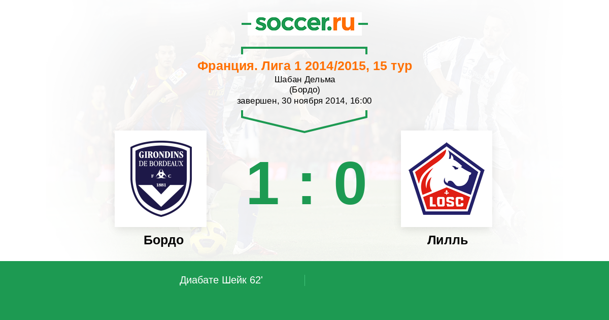 Протокол матча Бордо против Лилль