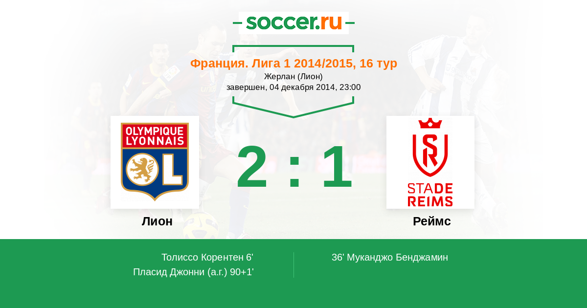 6' (1:0) Толиссо Корентен (24) (Фекир Набиль (18))
