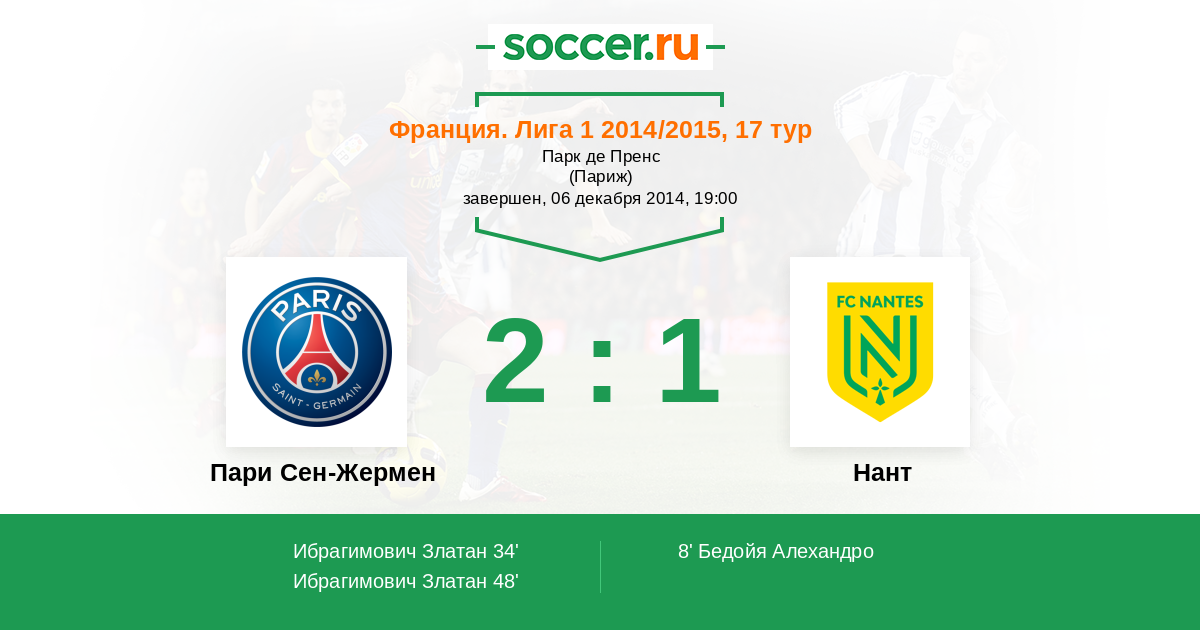 34' (1:1) Ибрагимович Златан (10) (Моура Лукас (7))