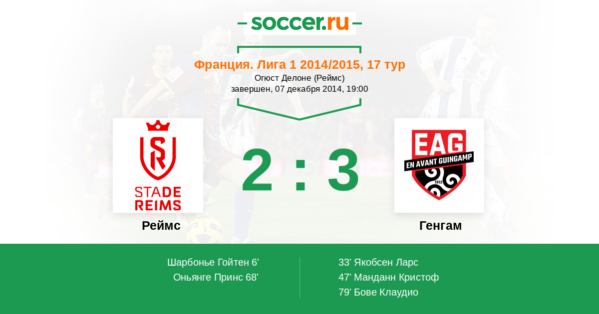 Протокол матча Реймс против Генгам