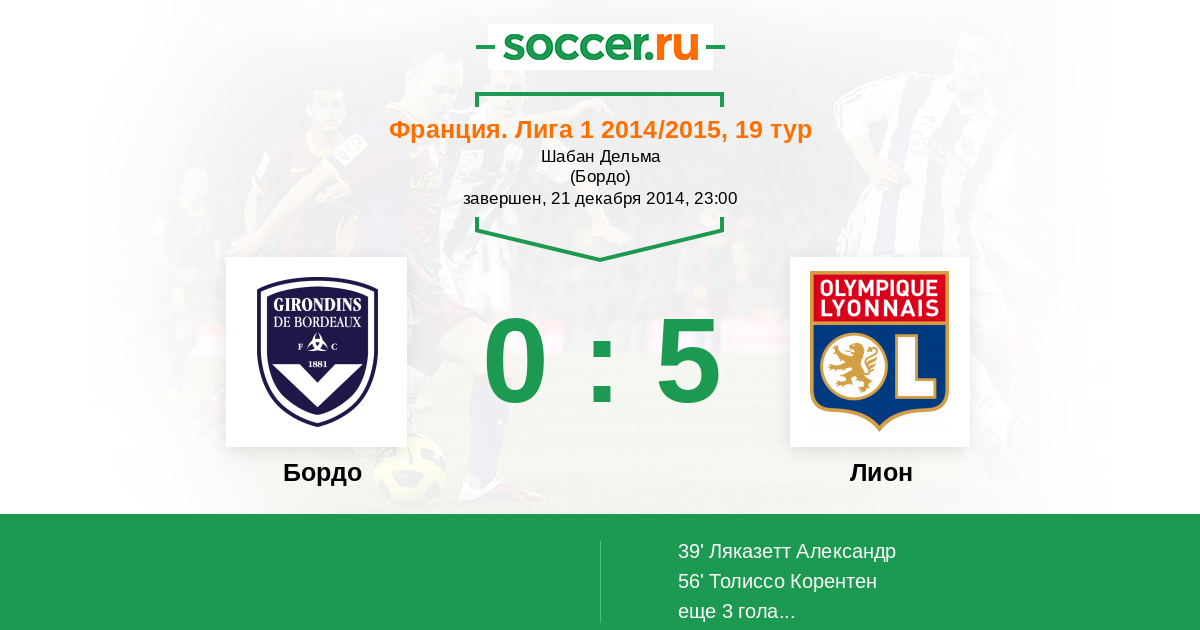 39' (0:1) Ляказетт Александр (10) (Фекир Набиль (18))