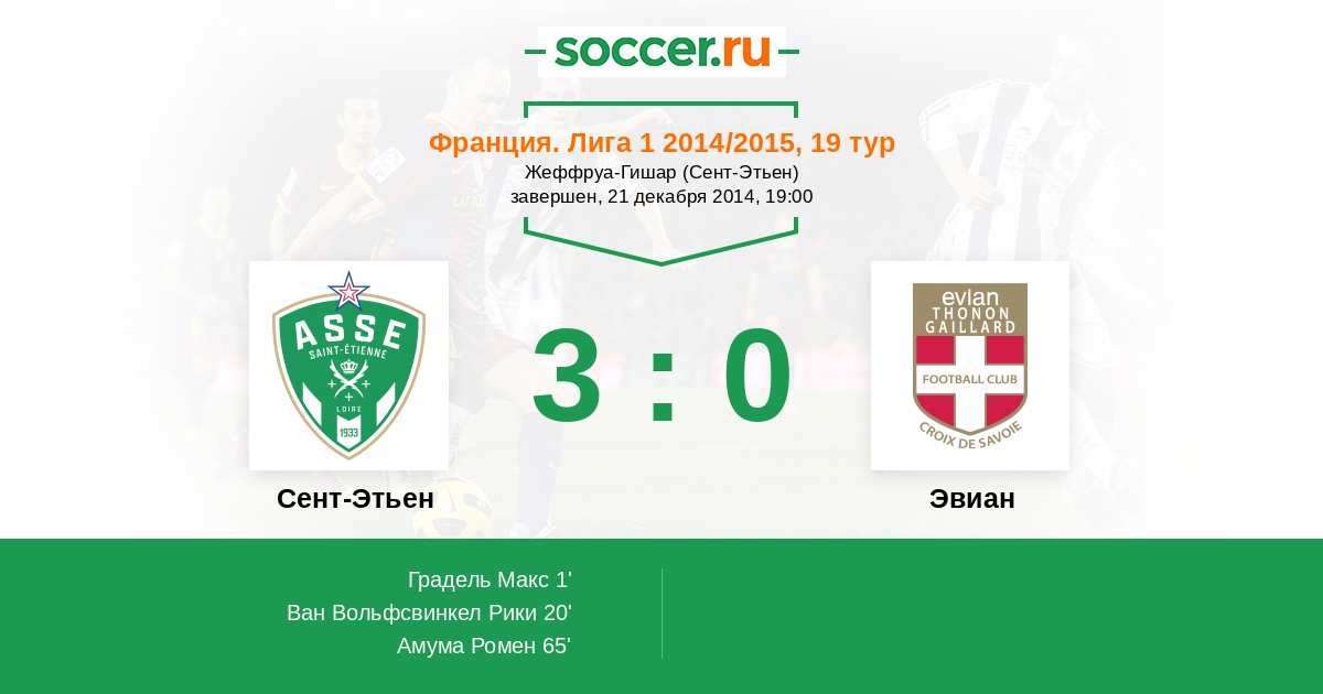 Протокол матча Сент-Этьен против Эвиан