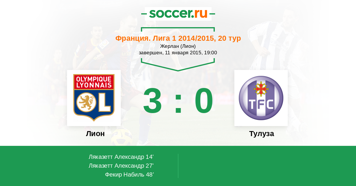14' (1:0) Ляказетт Александр (10) (Фекир Набиль (18))