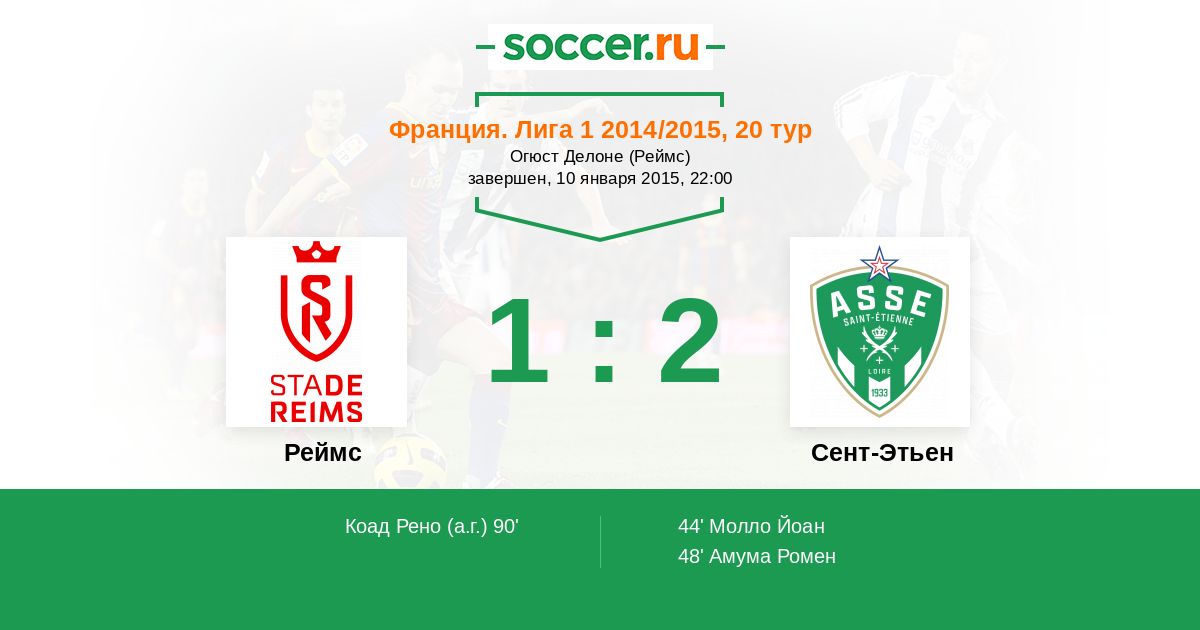 Протокол матча Реймс против Сент-Этьен