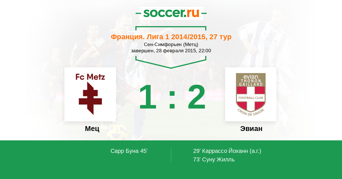 73' (1:2) Суну Жилль (15) (Томассон Адриен (7))