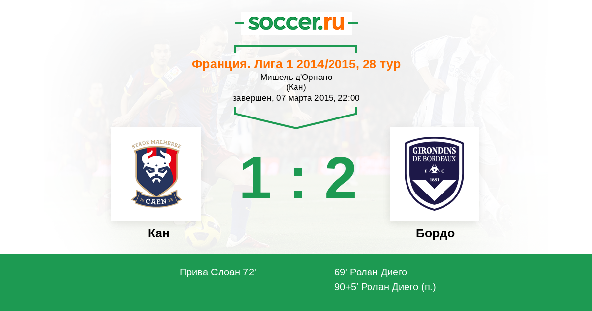 69' (0:1) Ролан Диего (9) (Морис-Белэй Николя (19))