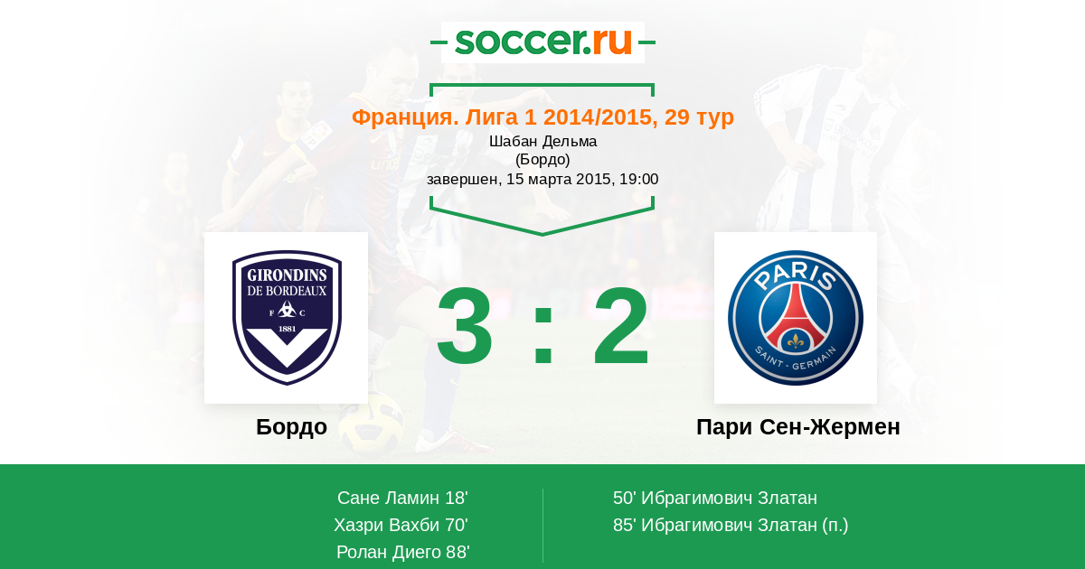 50' (1:1) Ибрагимович Златан (10) (Пасторе Хавьер (27))