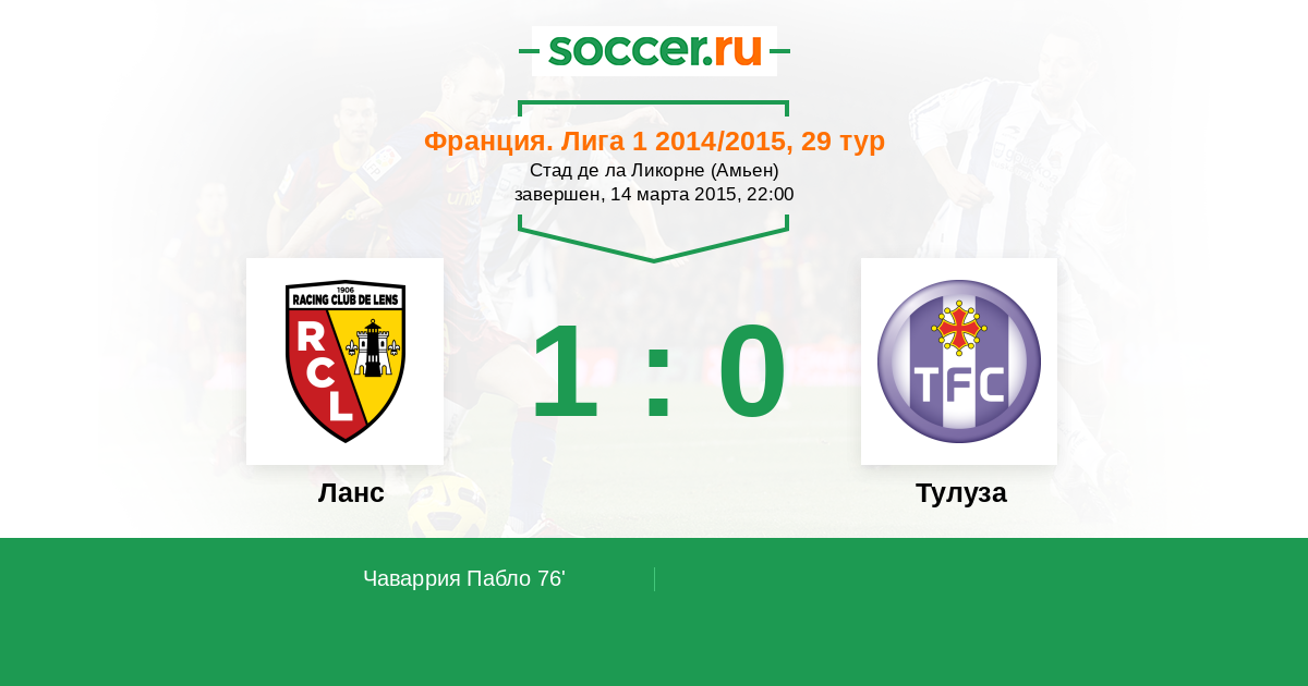 76' (1:0) Чаваррия Пабло (11) (Сиприен Вилан (23))