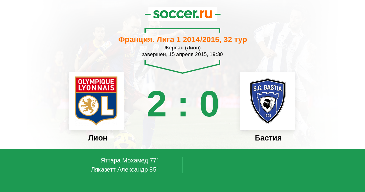 Протокол матча Лион против Бастия