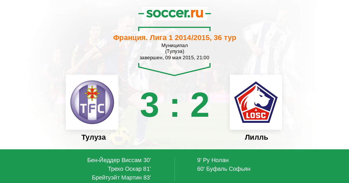 Протокол матча Тулуза против Лилль