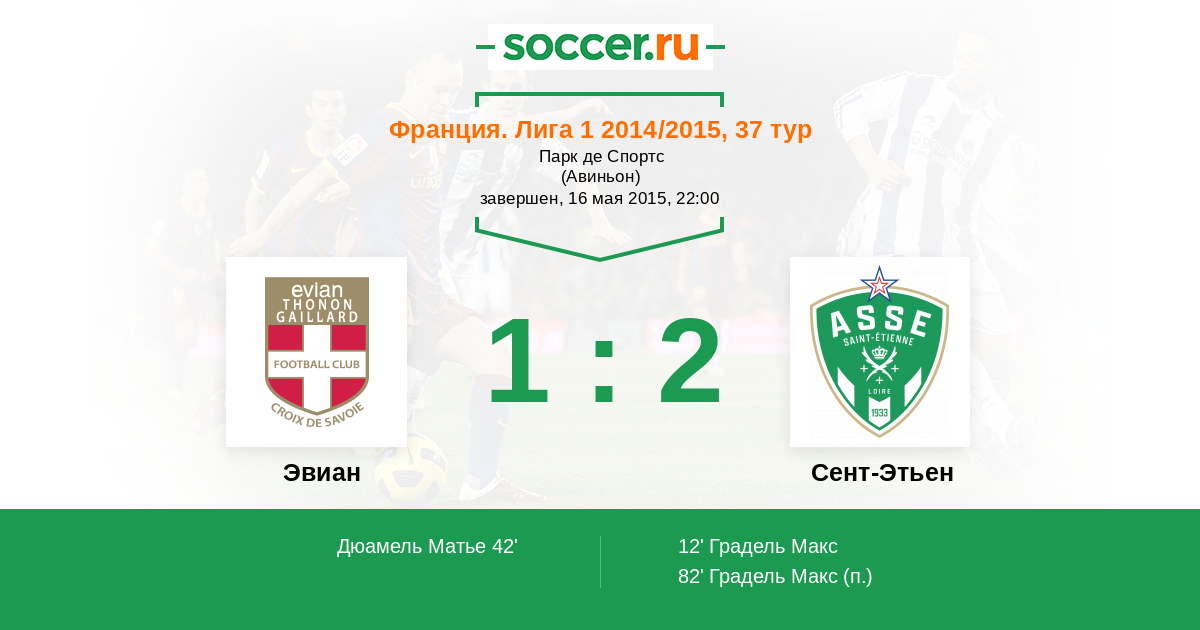 Протокол матча Эвиан против Сент-Этьен